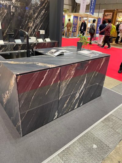 2日目に東京ビッグサイトで開催されていたジャパンホームビルディングショーへ。建材やインテリア製品他の展示会でございまして、弊社として関連のあるタイルやブロックなどの出店もございました。