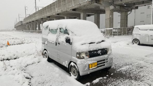 ですが、出社してからどんどん積もってきまして数時間後にはこの様な感じになりました。
