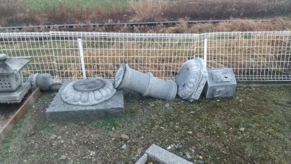下記画像は呉立苑の灯篭になります。苑内、お墓の倒壊などは一切ございませんでしたが駐車場付近の灯篭が倒れました。