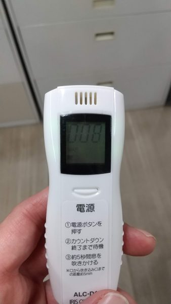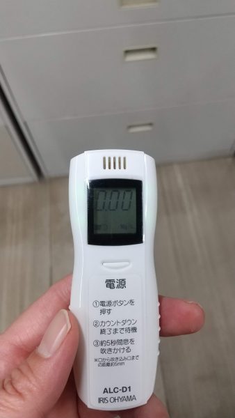 昨年の12月1日からのアルコールチェック義務化に伴い、弊社でも朝・夕のアルコールチェックを行っております。