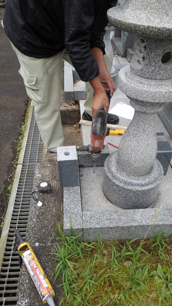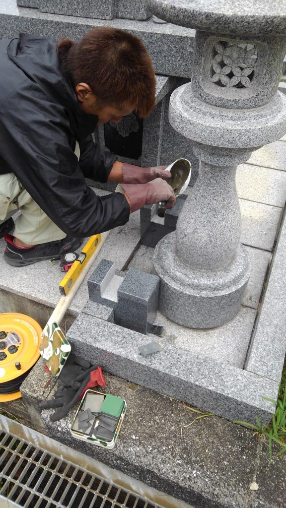 目地をコーキングし墓誌を乗せ、清掃して完了です。
