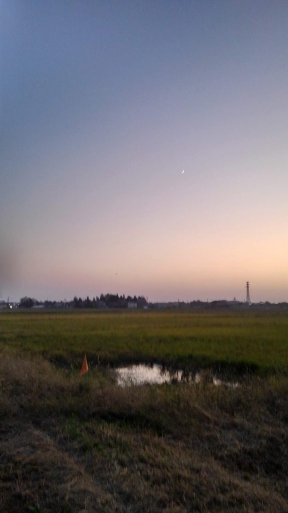 昨日の夕方、少々わかりずらしですが南の空に三日月。
