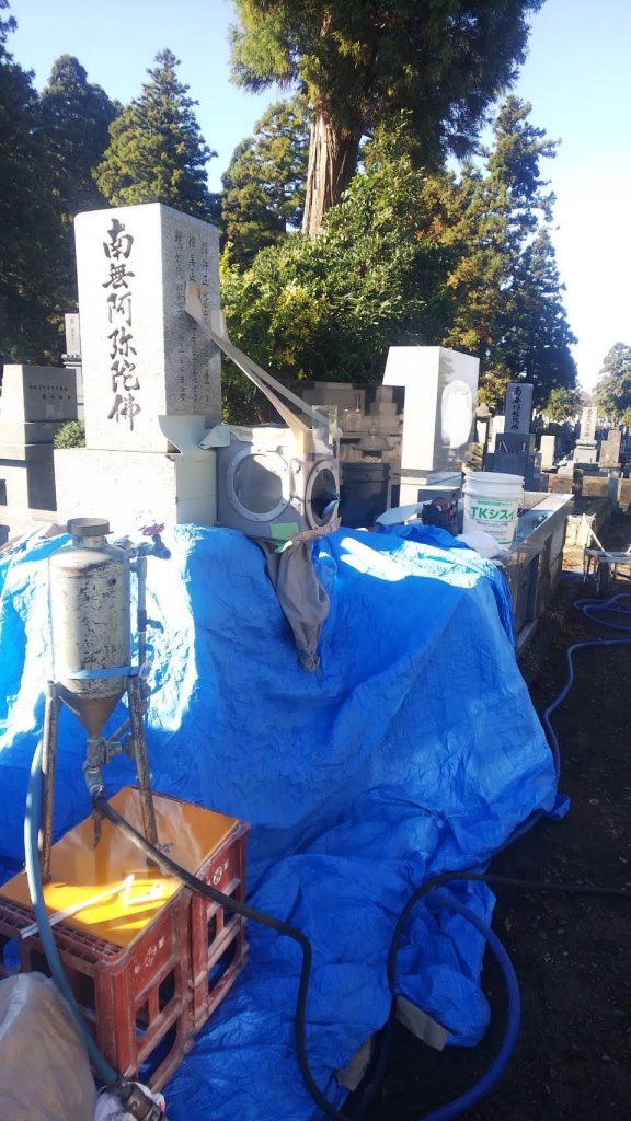 ですが、墓誌等は設置せず既存のお墓へ新たに字彫り加工を施す事も多くございます。その場合、墓地内に字彫り機やコンプレッサーを持ち込んで施工をさせて頂きます。