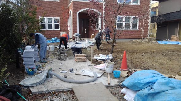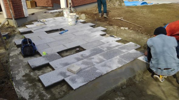 先週より、新築の住宅工事に伴う中庭アプローチの石張り工事を市内某所で施工させて頂いております。