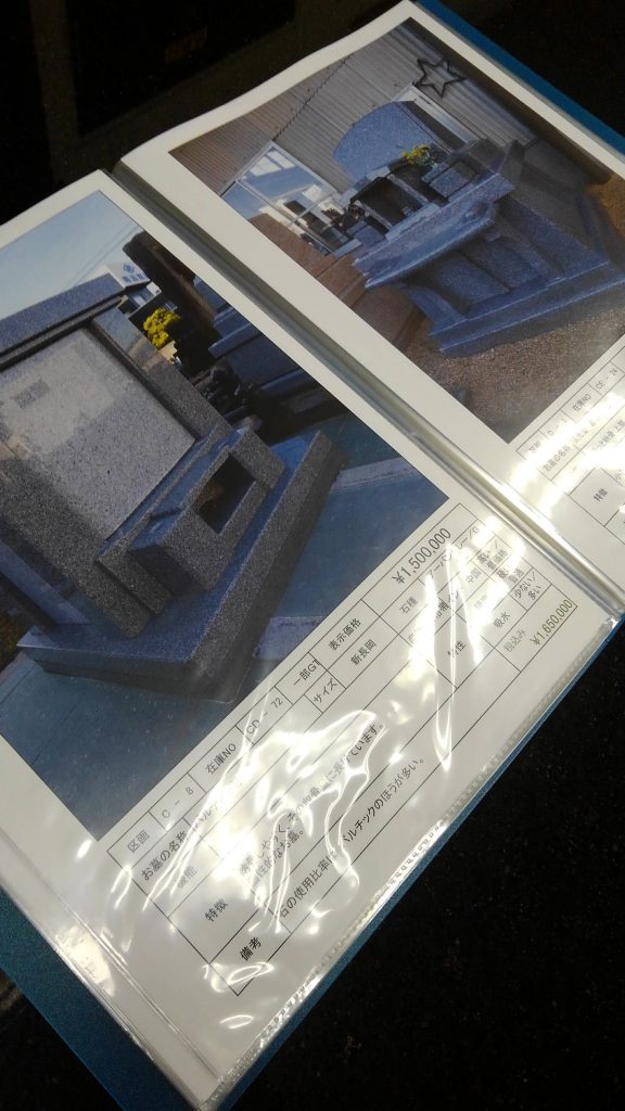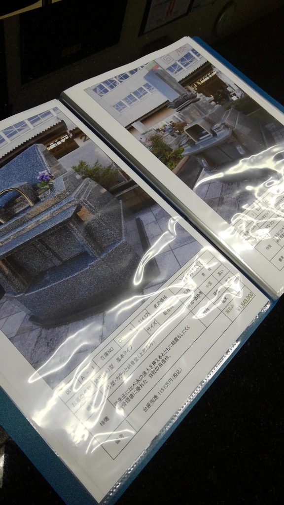 2019.11.20 お墓づくり お墓パンフレット 以前より準備を進めてまいりました、お墓パンフレットが完成しました。 自分が本社展示場にある展示墓の写真を新たに撮影し、以前からあったシステムに総務さんの方で掲載してもらいました。 お客様へお配り出来るものではございませんが、ご要望があれば貸出は可能でございます。 お客様のお宅への訪問の際に大活躍間違いなしでございます。 明日からまた頑張ります。。