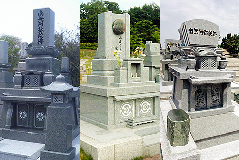 墓石は伝統的な和型、洋型から、オリジナルデザインのお墓まで、お客様のご要望に応じて設計・製作いたしております。石の色も、白御影石の他、赤・黄・青・緑・茶・桜・黒など豊富な種類の中からお選びいただけます。