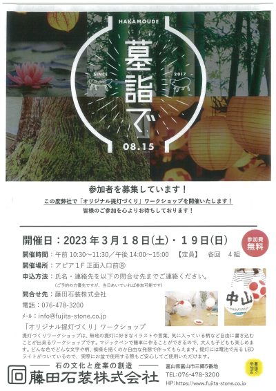 申込先:s.inou@fujita-stone-dev.iijapan.site 電話:076-478-3200
